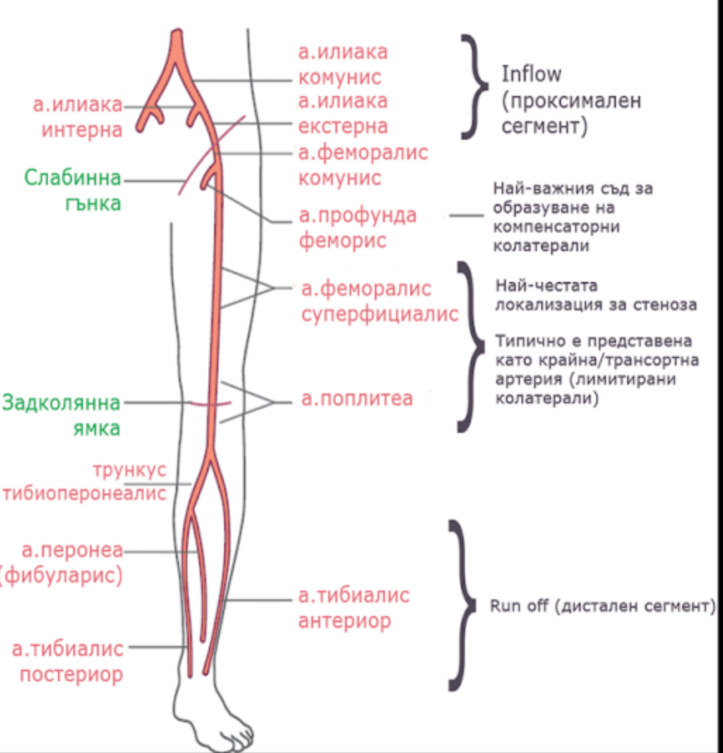 Накратко: ПАБ на долните крайници представлява намален кръвоток към краката вследствие на стеснени от плака артерии. Това може да засегне различни участъци от артериалното дърво – от аортата и илиачните съдове в корема и таза, през бедрените артерии, чак до по-малките артерии под коляното. Крайният ефект е кислороден глад в мускулите при усилие и болка, а при тежко запушване – исхемия на тъканите дори в покой.